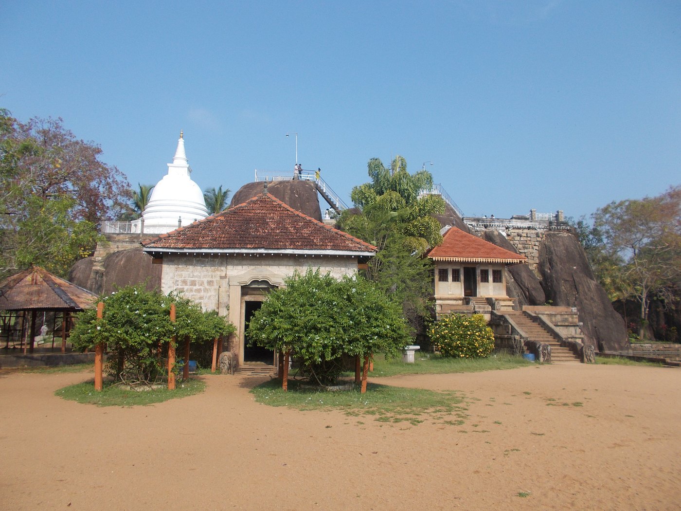 Les grottes sacrées du Temple d'Or de Dambulla est une montagne isolée qui s’élève à environ 600 pieds au-dessus de la plaine Sri Lankaise. Elle est construite autour d’un large rocher de granit qui renferme un important complexe de grotte et abrite le temple historique de Dambulla. C’est l’un des plus anciens sanctuaires bouddhistes au Sri Lanka. Le site consiste en quelque quatre-vingts grottes, cinq sanctuaires, quatre monastères principaux. Il comporte 157 statues, 153 images du Bouddha, 3 images royales et 4 images de divinités. Ces peintures et statues sont liées à Gautama Bouddha et sa vie.